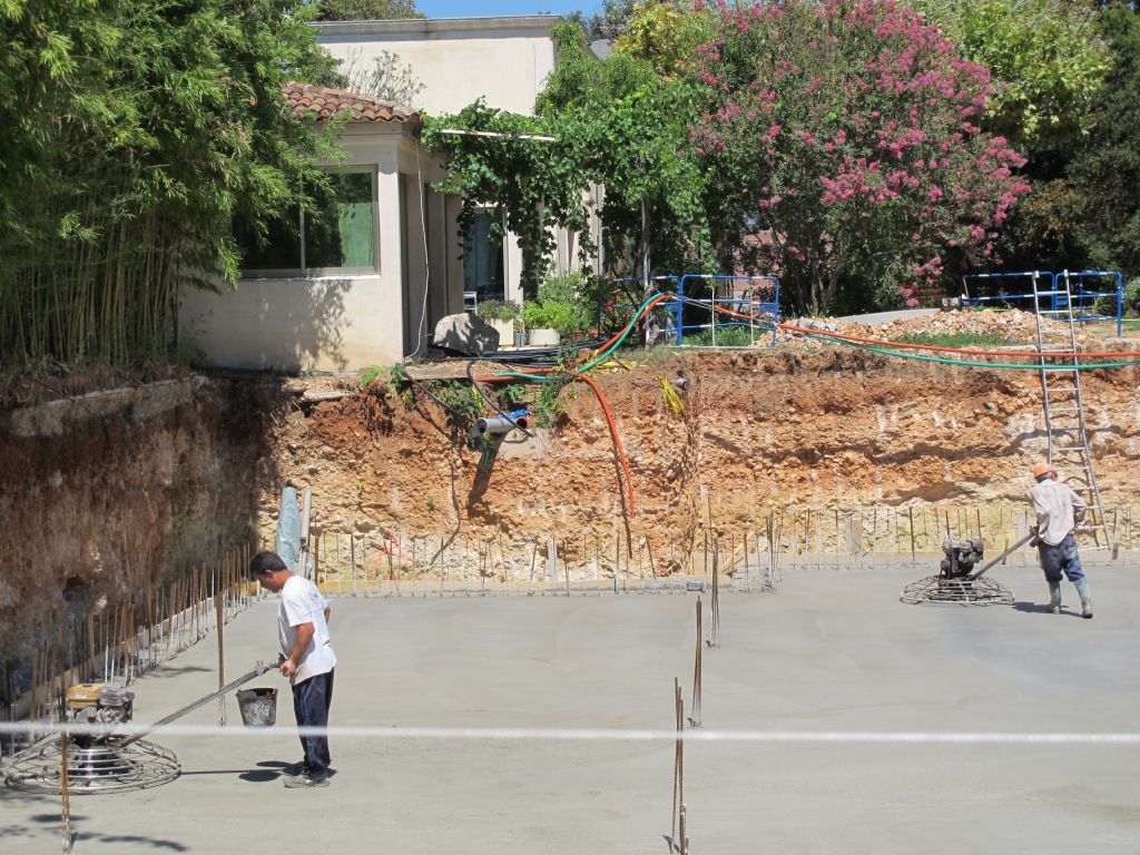 la dalle finie… enfin presque… un petit carré au fond à gauche ne sèche pas!